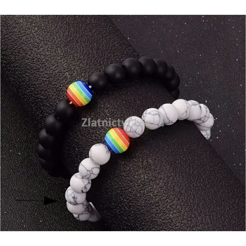 Náramek na gumičce s korálky, motiv duhy