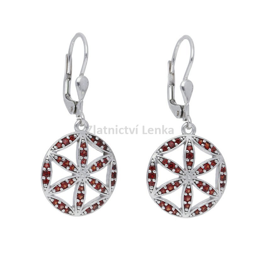 Parametry produktu Stříbrné náušnice s českými granáty, visací - mandala 12GR211443SN