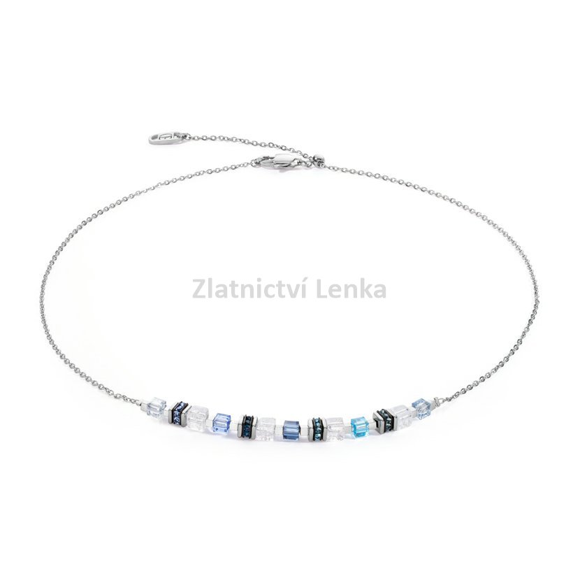 Užijte si jednoduchou eleganci našeho náhrdelníku Mini Cubes & Chain ve stříbrno-modré barvě - sofistikovaného šperku, který okouzlí jemným designem a jedinečným kouzlem materiálů.