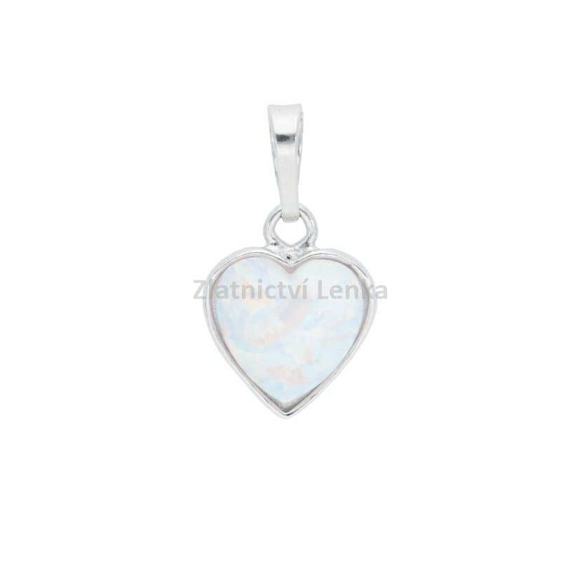 Stříbrný přívěsek bílého opálu. Šperk má lepené kamínky, proto ho doporučujeme odkládat při koupání.