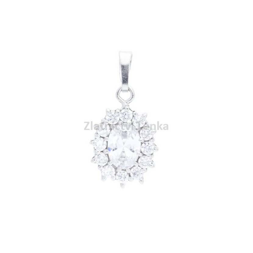 Přívěsek ze stříbra, který je osázen kamínky s povrchovou úpravou rhodium. Šperk není nutné odkládat na koupání a spaní.