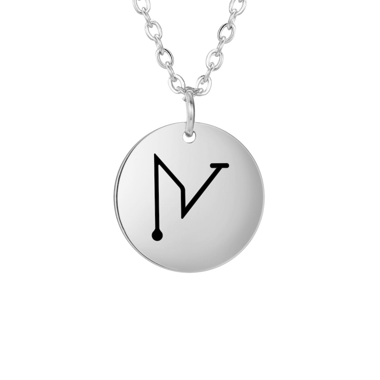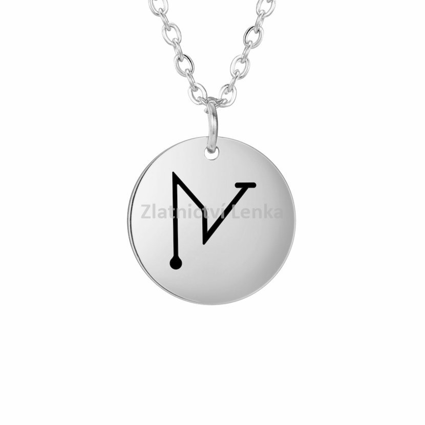 Řetízek s přívěskem z chirurgické oceli, délka řetízku je 45 cm + 5 cm prodlužovací očko, velikost přívěsku je 1,5 × 1,5 cm.