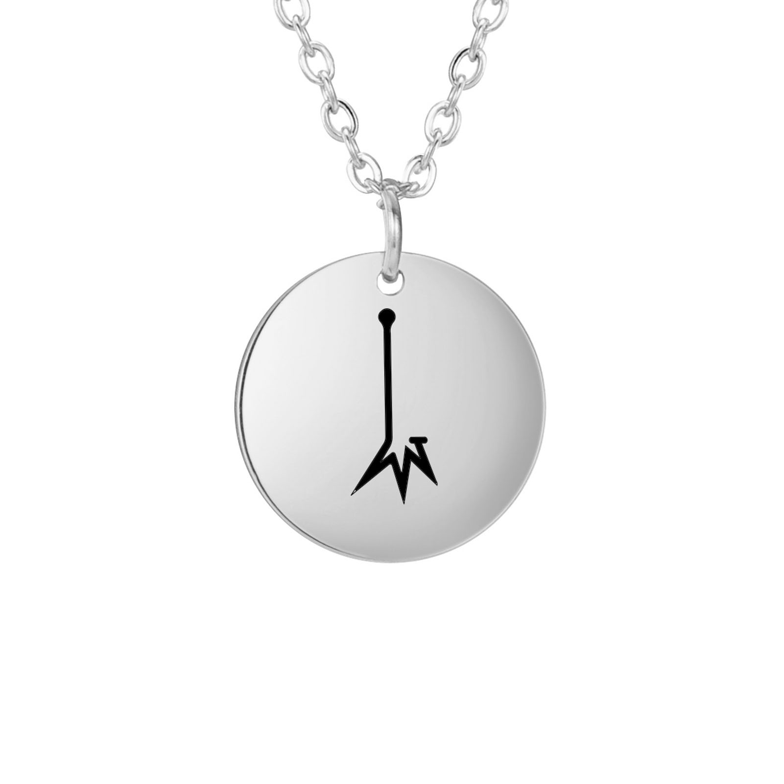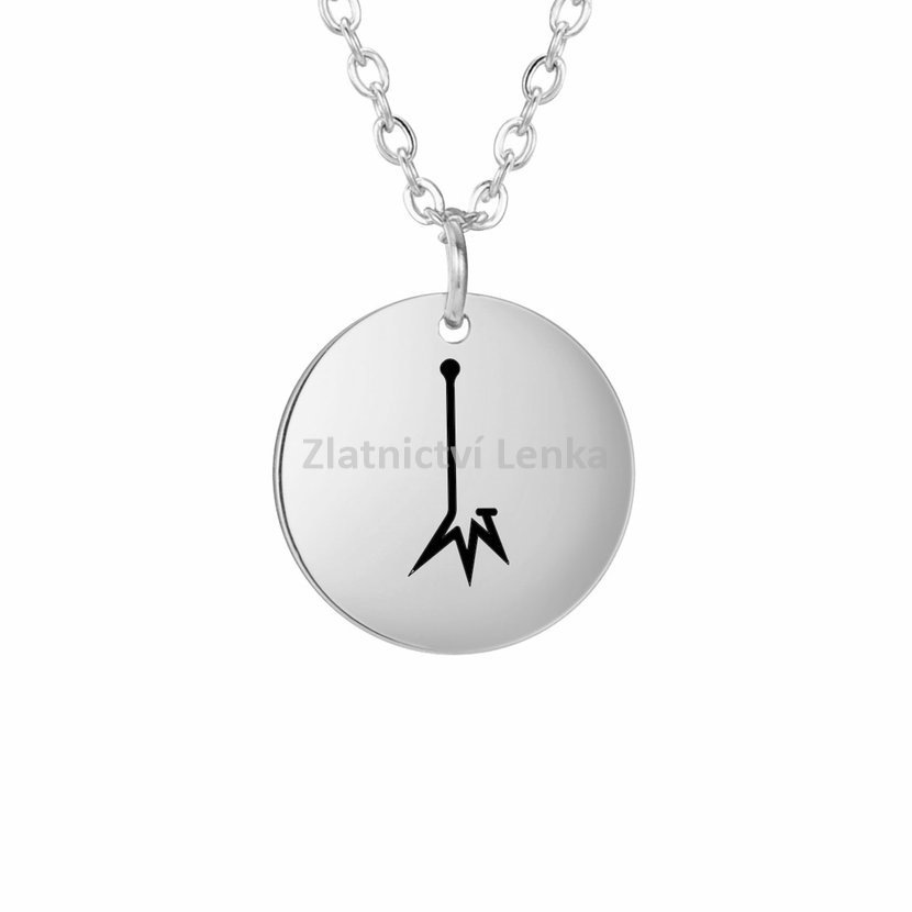 Řetízek s přívěskem z chirurgické oceli, délka řetízku je 45 cm + 5 cm prodlužovací očko, velikost přívěsku je 1,5 × 1,5 cm.