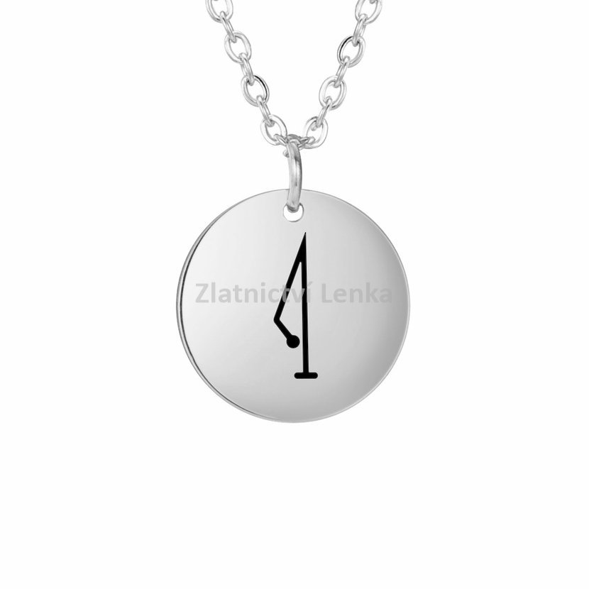 Řetízek s přívěskem z chirurgické oceli, délka řetízku je 45 cm + 5 cm prodlužovací očko, velikost přívěsku je 1,5 × 1,5 cm.