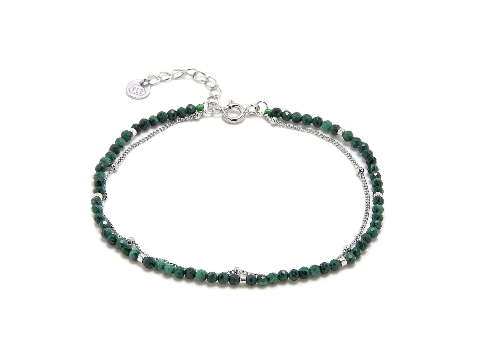 Elegantní náramek z perel a malachitu doplněný o stříbrné komponenty vyniká spojením jemnosti a síly.Kombinace perel a malachitu přináší harmonii, proměnu a ženskou energii.