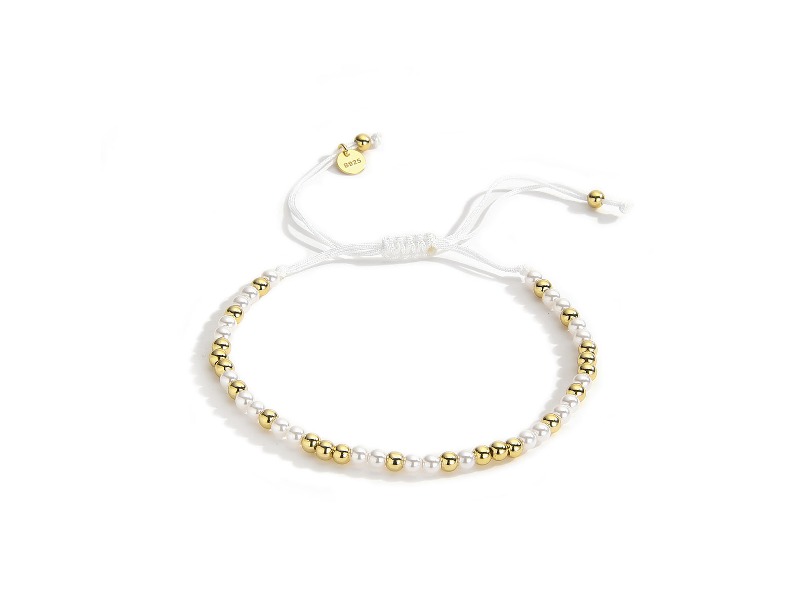🤍 Náramek, který propojuje něhu perel se zářivým teplem zlaceného stříbra.
