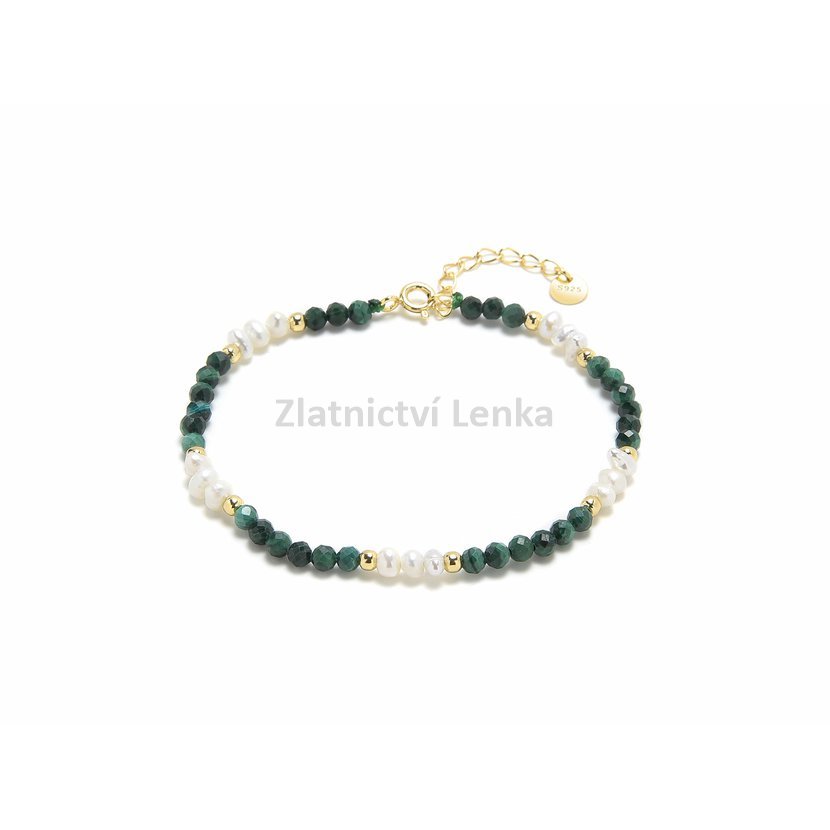 Elegantní náramek z perel a malachitu doplněný o stříbrné komponenty propojuje jemnost a sílu.Kombinace perel a malachitu přináší harmonii, vnitřní klid a odvahu k proměně.