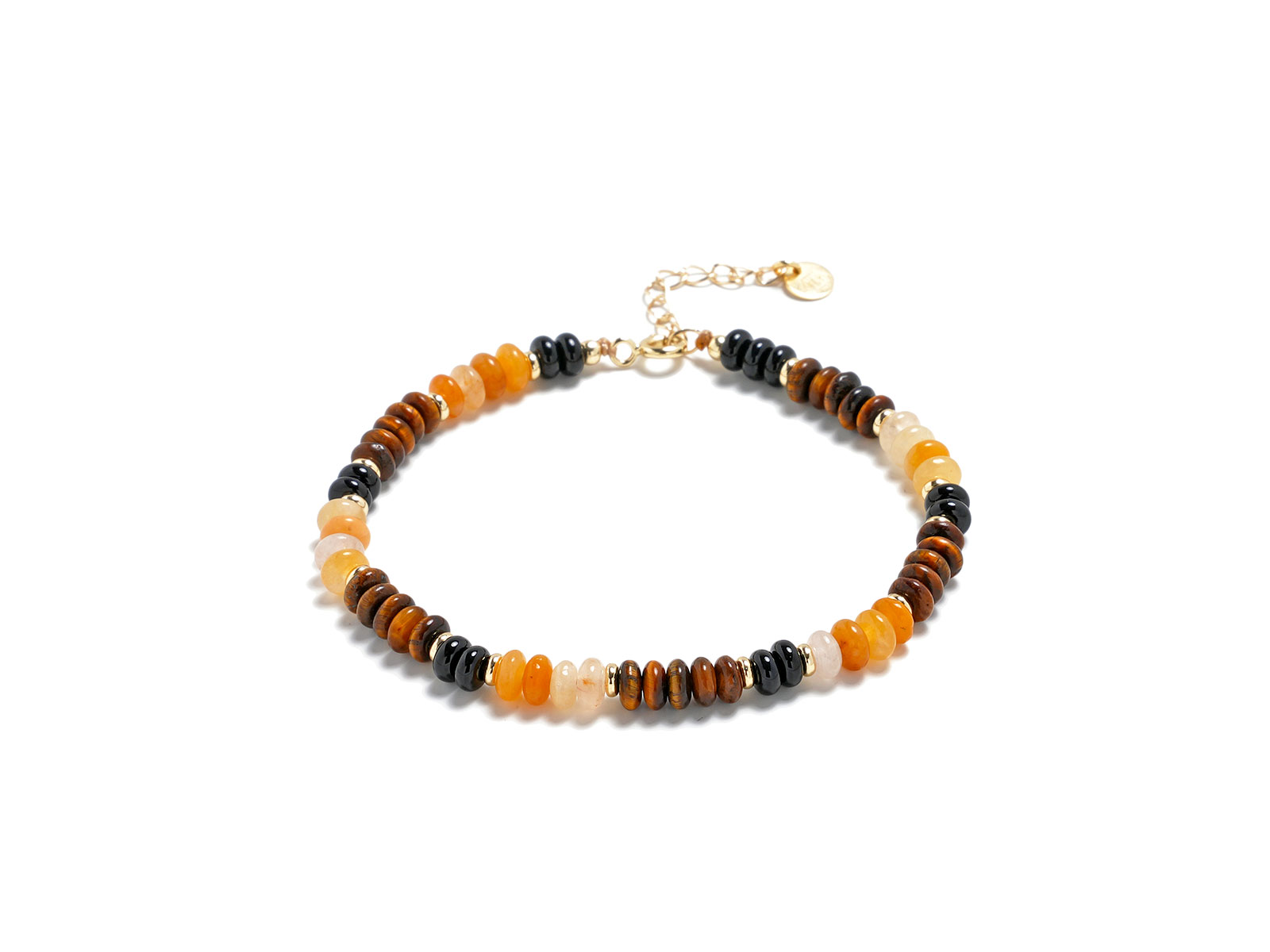 🌞 Náramek, který propojuje sluneční energii žlutého jaspisu, odvahu tygřího oka a ochrannou sílu černého achátu.
