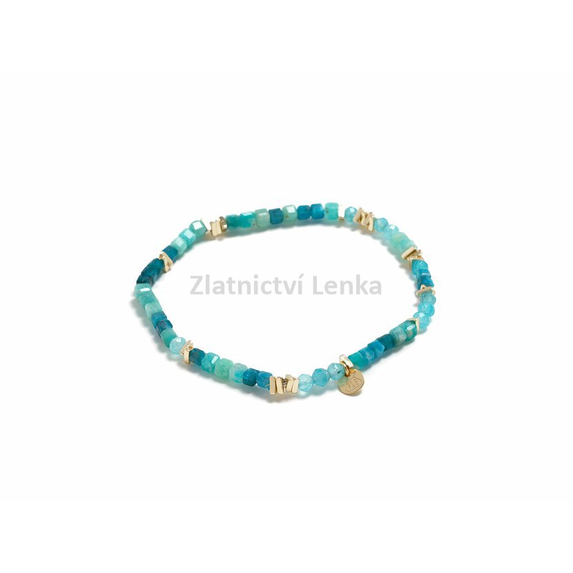 Jemné odstíny modré a tyrkysové symbolizují rovnováhu, důvěru a upřímnost, zatímco zlacené stříbrné komponenty dodávají šperku elegantní teplo a jemný lesk.