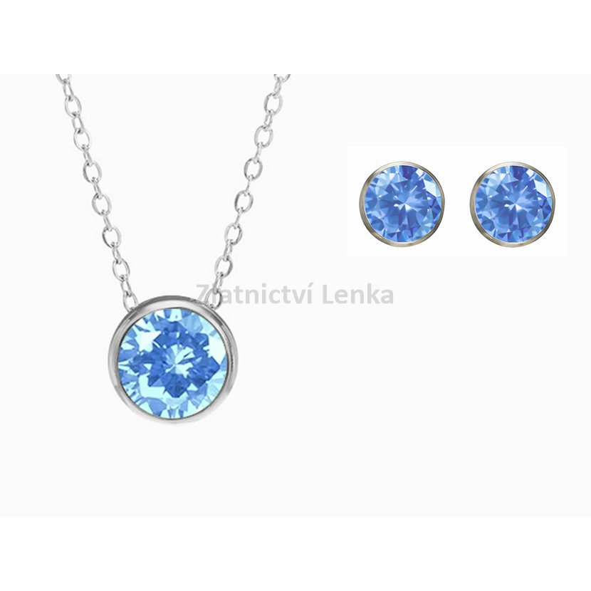 Minimalistická souprava z chirurgické oceli s náhrdelníkem a pecičkovými náušnicemi, osazená kamínkem v barvě měsíce narození. Každý odstín nese svůj vlastní význam a energii.