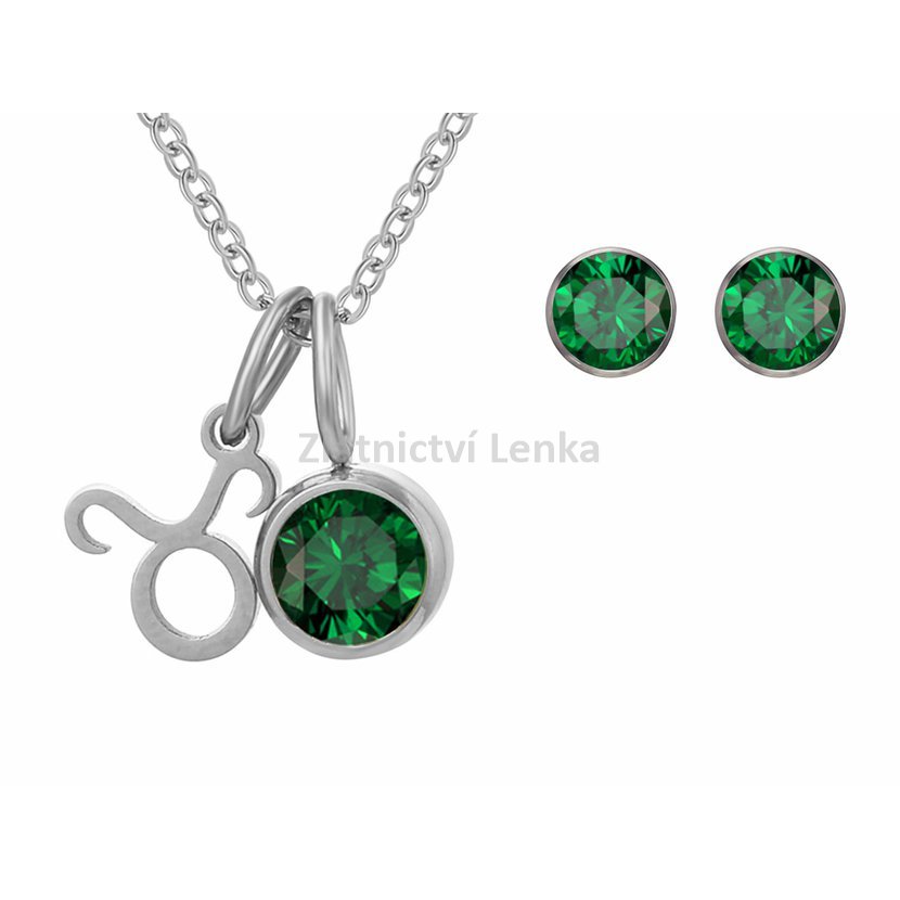 Objevte kouzlo osobní symboliky se soupravou, která v sobě spojuje náhrdelník s přívěsky znamení zvěrokruhu a barevným kamínkem a sladěné pecičkové náušnice.