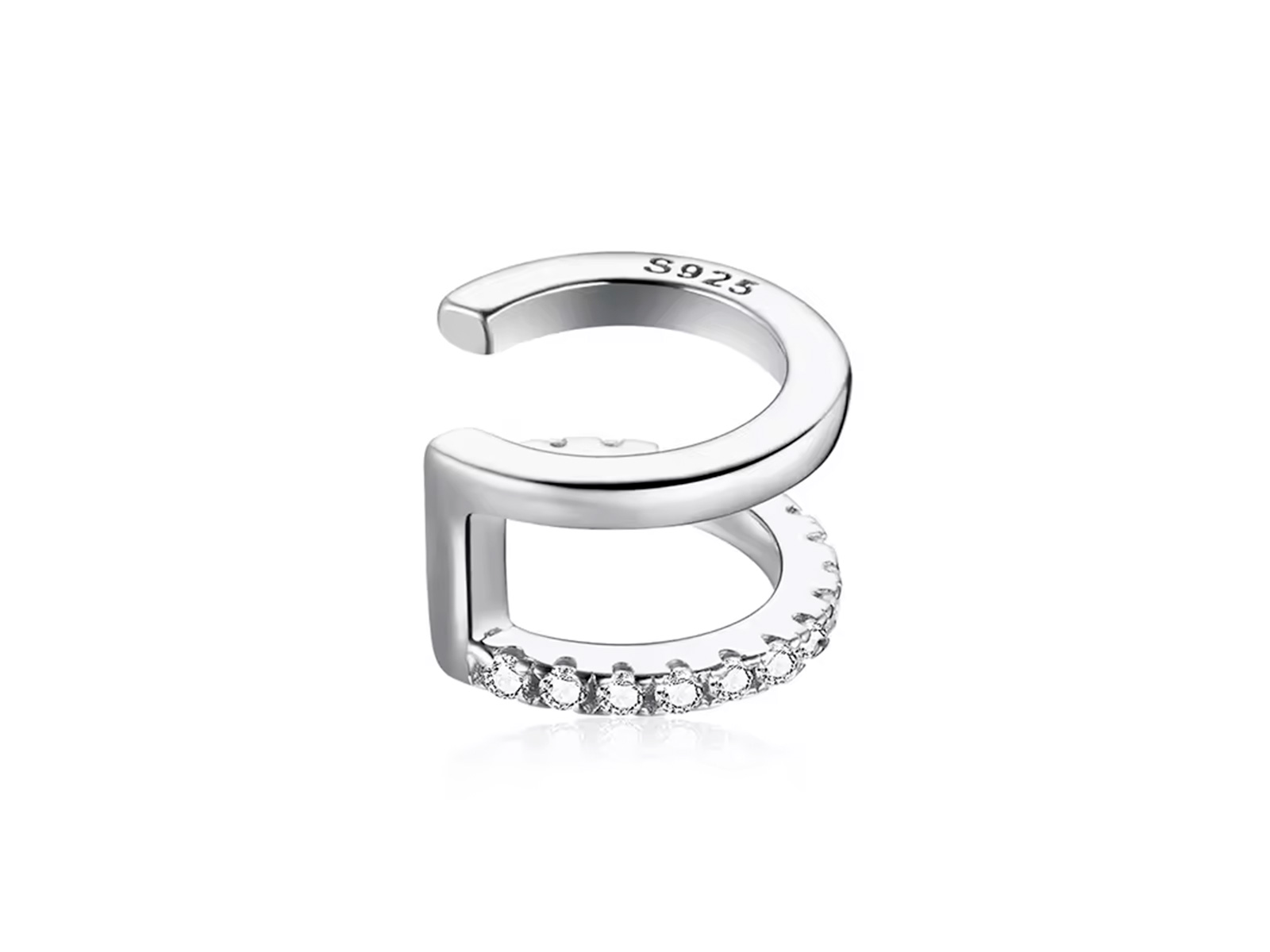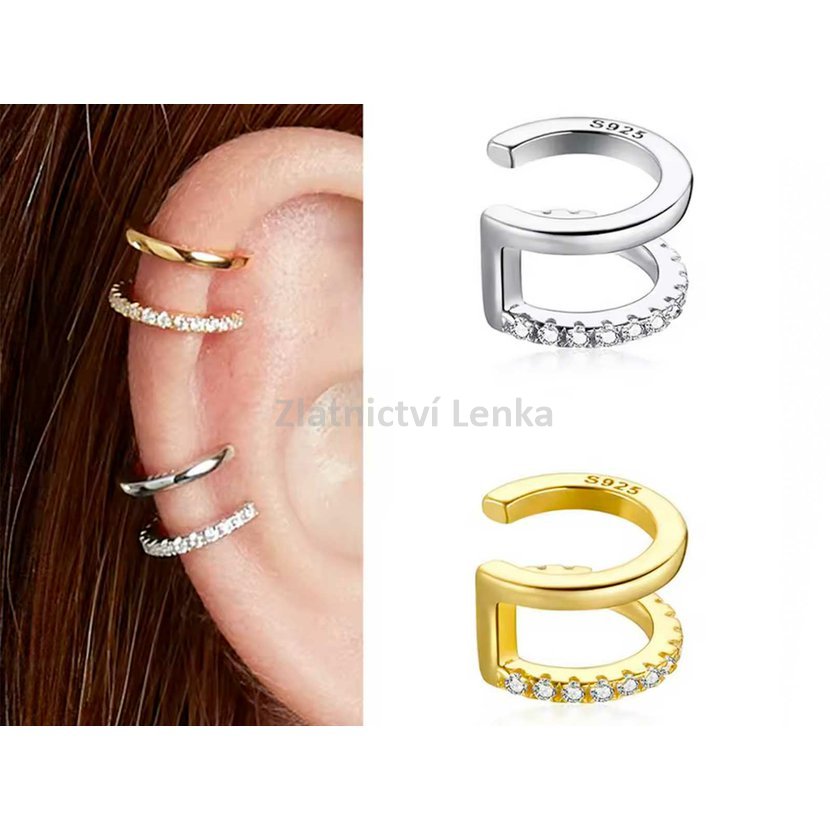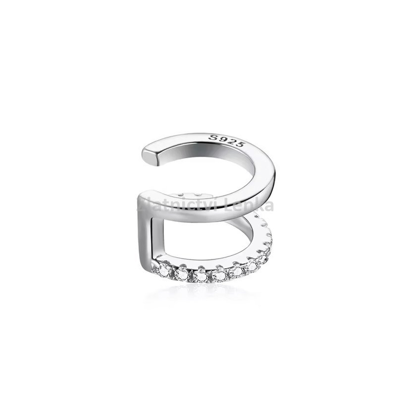 Stříbrný ear cuff s dvojitou linií a zirkony – moderní elegance pro Vaše ucho