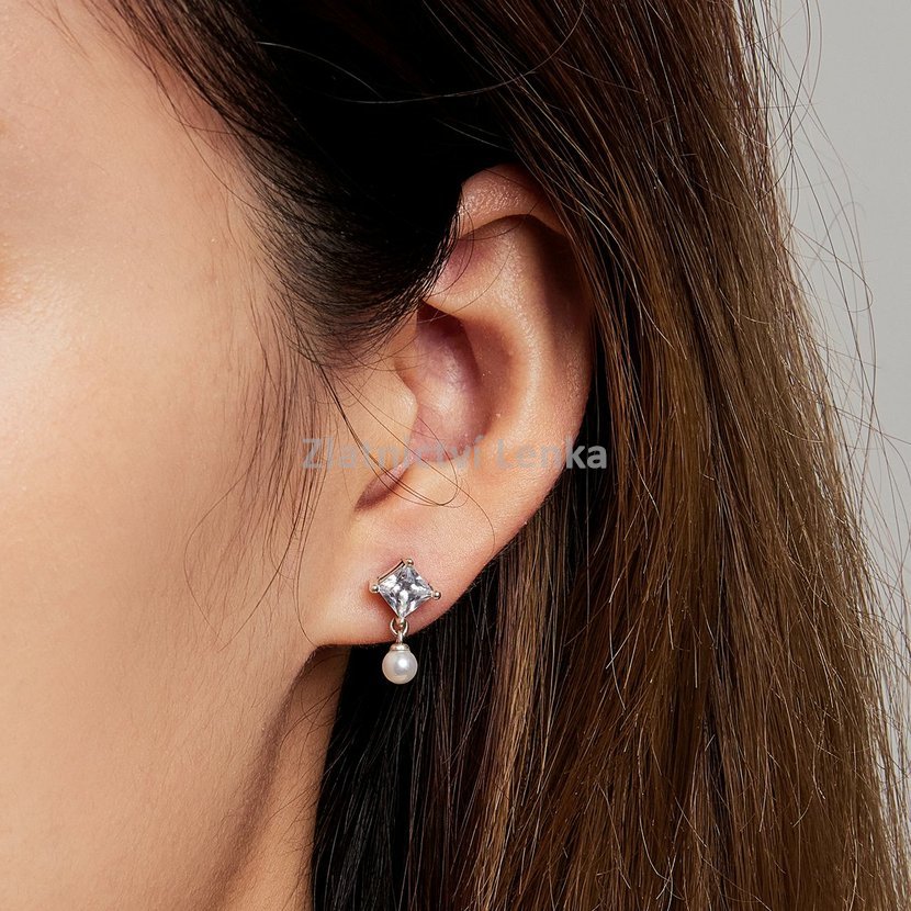 Parametry produktu  Stříbrné náušnice se syntetickou perlou 901F100B1366