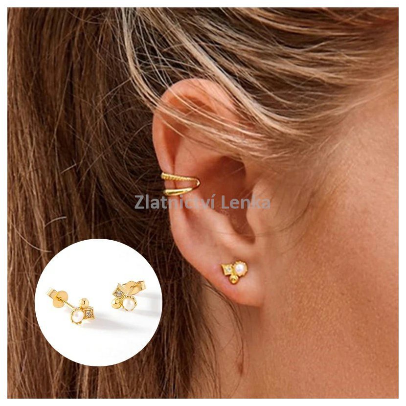 Zlacené stříbrné náušnice se syntetickou perlou 901F100R1476
