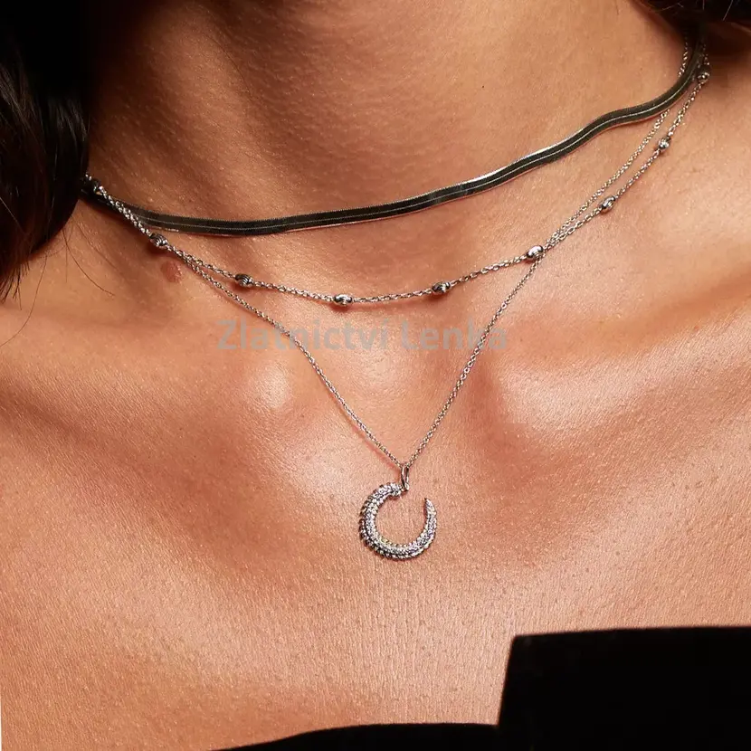Náhrdelník je vyroben z kvalitního rhodiovaného stříbra a ručně osazen pravým diamantem.Přívěsek o rozměru 16 x 16 mm je zavěšen na jemném řetízku s nastavitelnou délkou 40–45 cm, díky které se skvěle přizpůsobí vašemu stylu.
