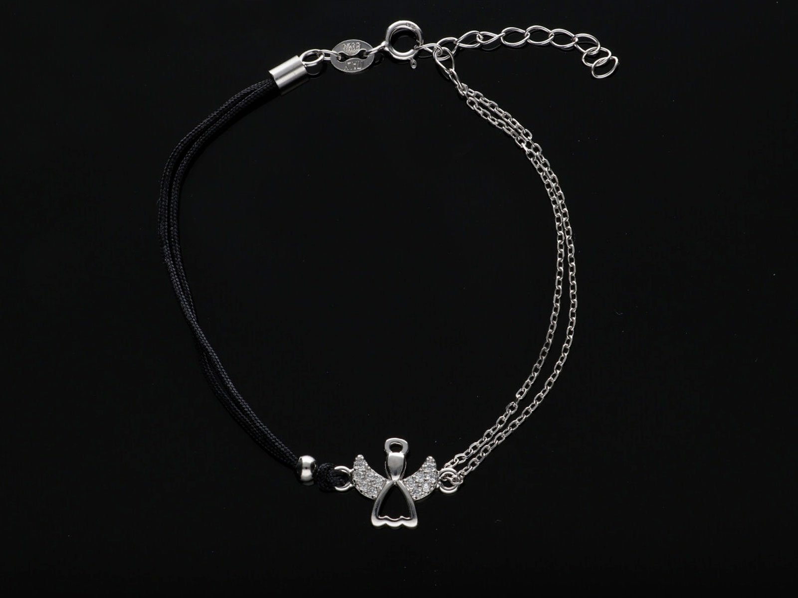 Parametry produktu Stříbrný náramek na černé šňůrce a řetízku s andělem