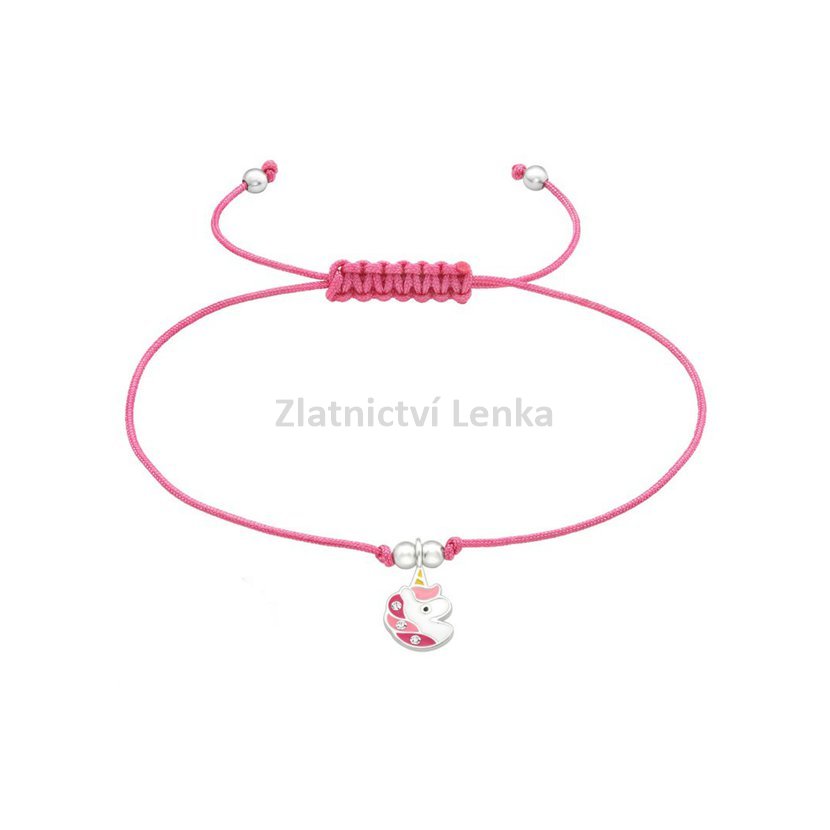 Stříbrný náramek na šňůrce vzor jednorožec 913M500P3834