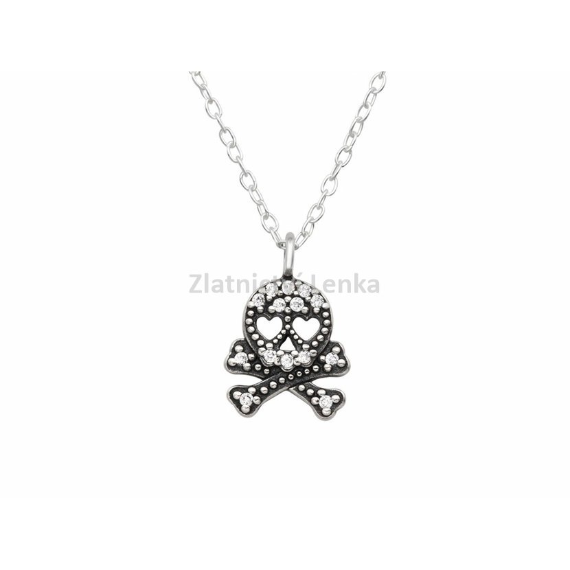 Stříbrný řetízek s přívěskem s motivem kostry