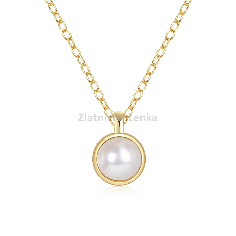 Zlacený stříbrný řetízek s přívěskem se syntetickou perlou 903F142C1563