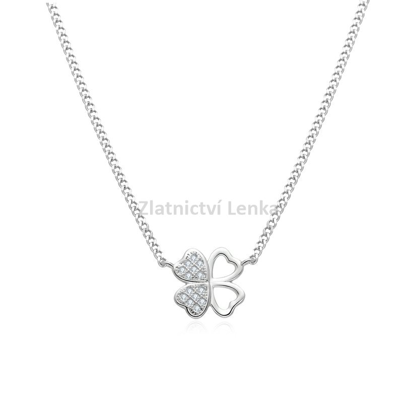 Stříbrný řetízek s přívěskem se zirkony vzor čtyřlístek 903B142D4565