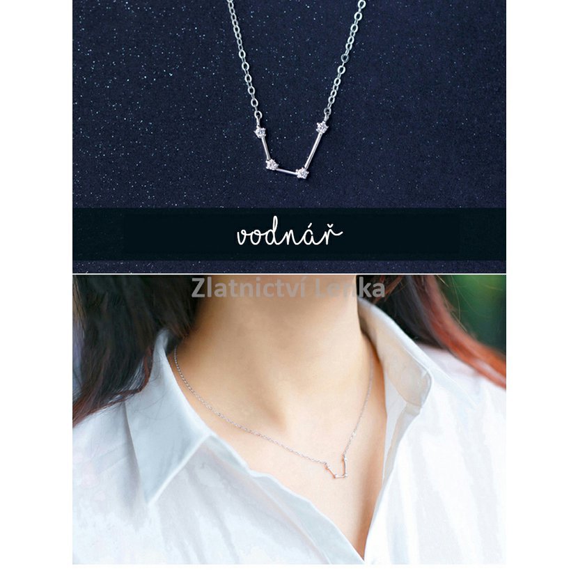 Stříbrný řetízek s přívěskem se zirkony vzor VODNÁŘ 903B142A1044