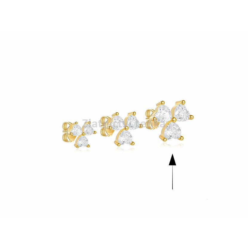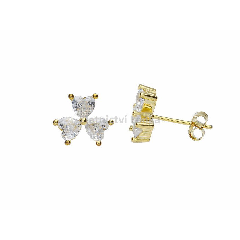 Materiál: stříbro 925/1000 Povrchová úprava: zlacení Velikost: 10 x 10 mm Zapínání: puzetka Osazení: bílý zirkon Doporučení: šperk doporučujeme odkládat, aby si co nejdéle zachoval svůj krásný vzhled.