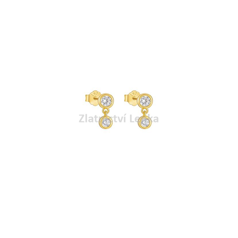 Zapínání na puzetku zajišťuje pohodlné a bezpečné nošení během celého dne. Zlacený povrch dodává náušnicím teplý zlatý tón, který v kombinaci s bílými zirkony vytváří harmonický a velmi ženský celek. Tyto náušnice jsou krásnou volbou pro běžné nošení i pro chvíle, kdy chcete svůj vzhled doplnit jemným a elegantním detailem.