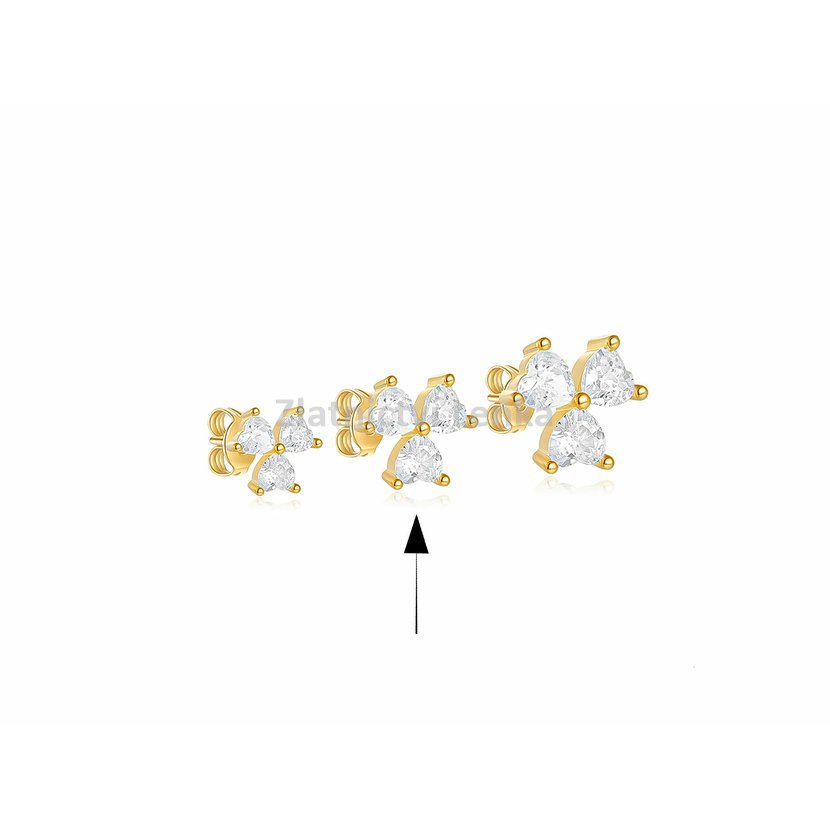Zlacené náušnice ze stříbra 925/1000 zdobí romantický motiv srdcí a jemně třpytivé bílé zirkony, které šperku dodávají něžný a ženský vzhled. Menší provedení působí velmi vkusně, decentně a snadno se kombinuje s dalšími doplňky ve zlatém tónu.