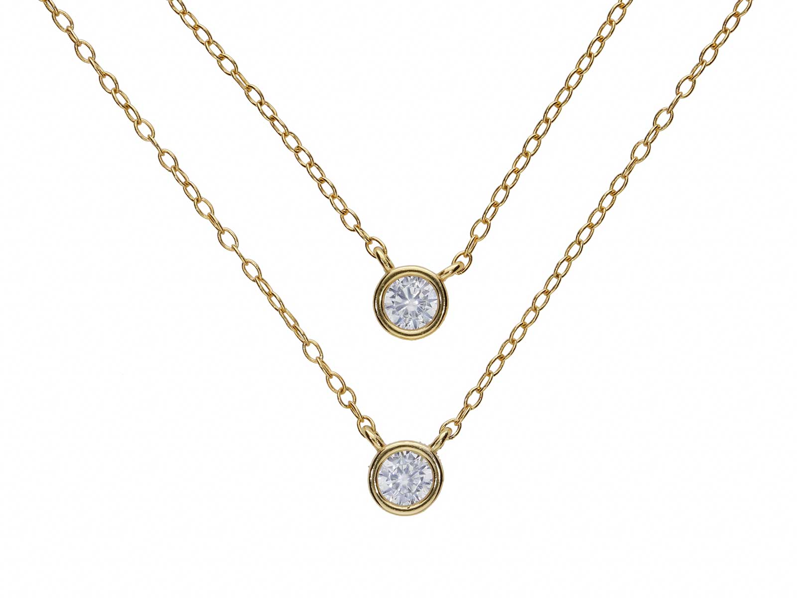 Každou linii zdobí bílý kulatý zirkon zasazený do hladkého lůžka, který při pohybu jemně zachycuje světlo a vytváří decentní třpyt. Ozdoby o velikosti 5 x 5 mm působí subtilně, ale zároveň dokážou náhrdelníku dodat výraznější detail. Minimalistické provedení umožňuje snadné kombinování s dalšími doplňky, zatímco vrstvený efekt vytváří dojem propracovaného a stylového šperku.