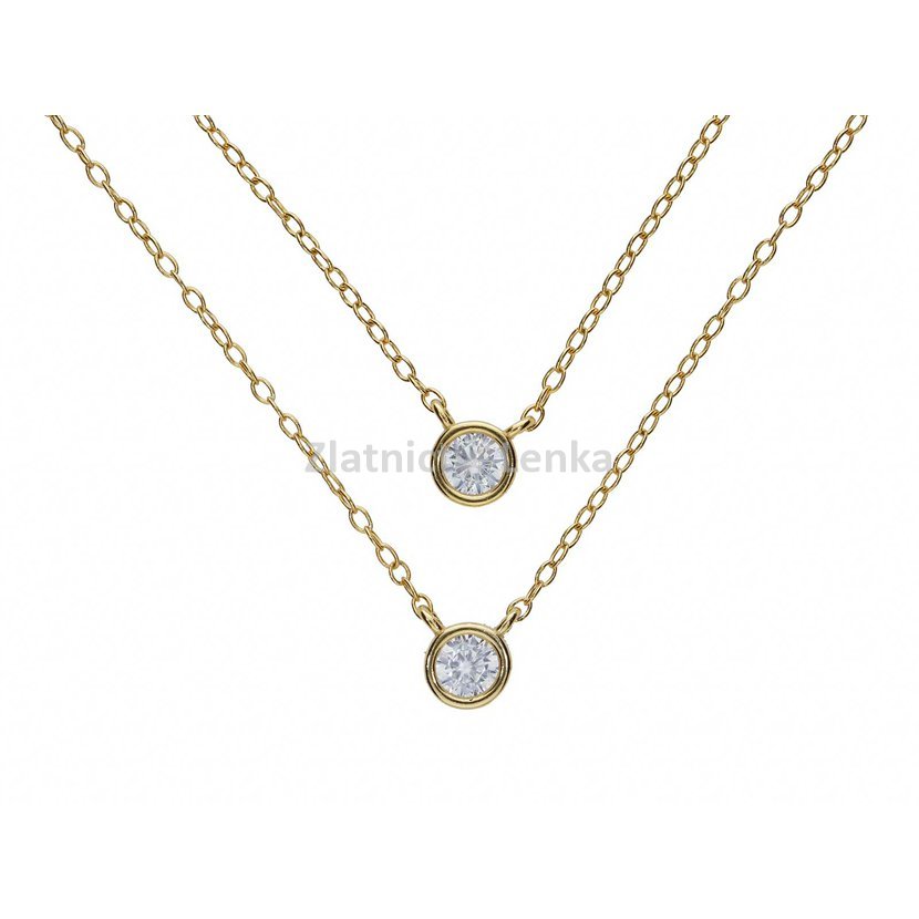 Zlacený náhrdelník ze stříbra 925/1000 zaujme efektem dvojitého řetízku, který vytváří jemný vrstvený vzhled a dodává šperku moderní, ale stále velmi elegantní charakter. Jedna linie náhrdelníku se plynule rozdvojuje, díky čemuž šperk působí lehce, vzdušně a velmi ženským dojmem. Tento detail krásně zvýrazňuje dekolt a dodává outfitu sofistikovaný akcent.