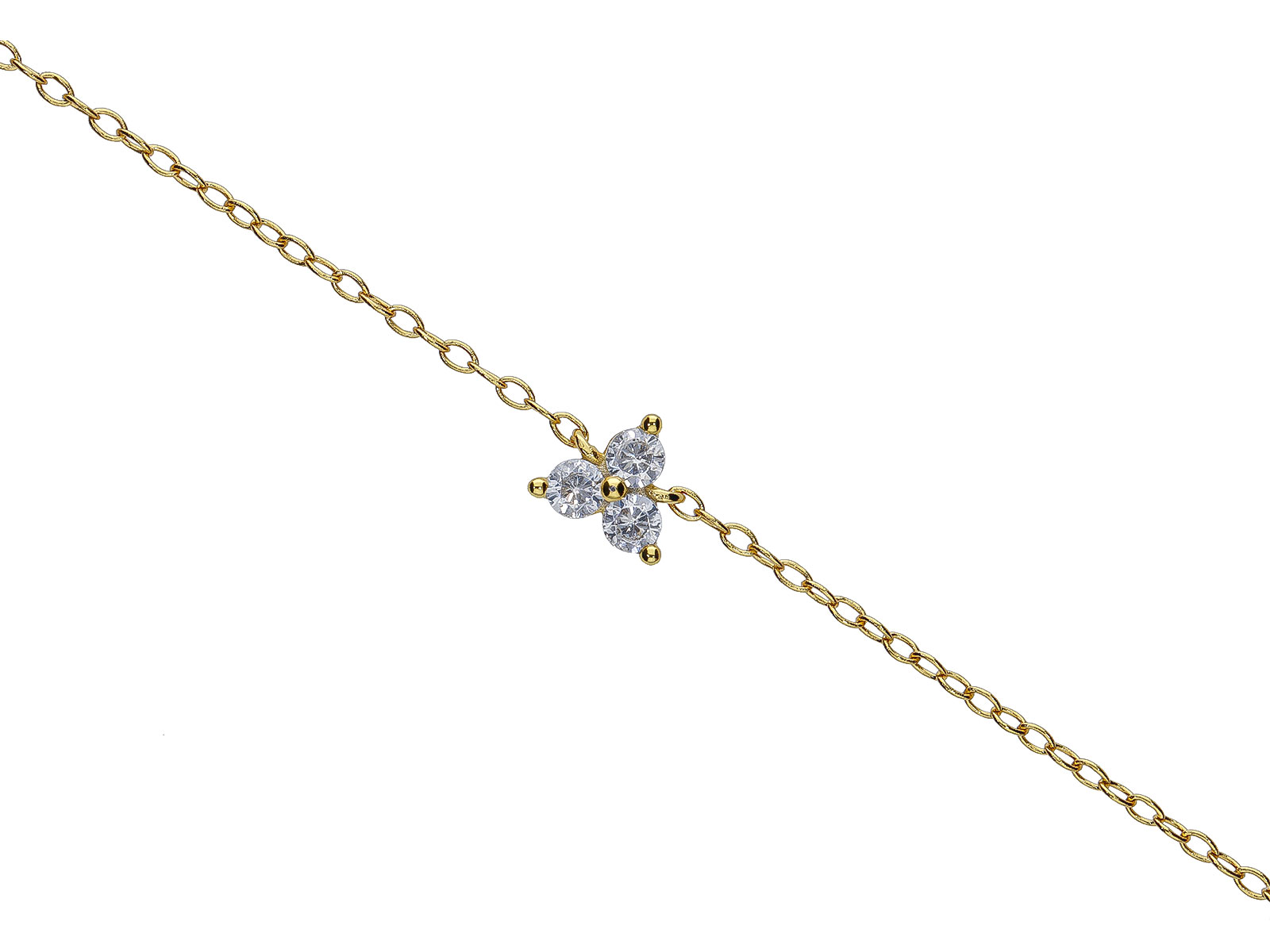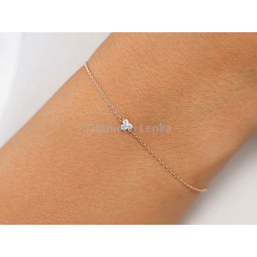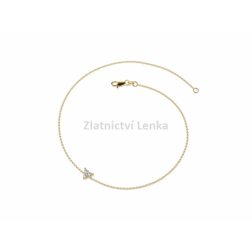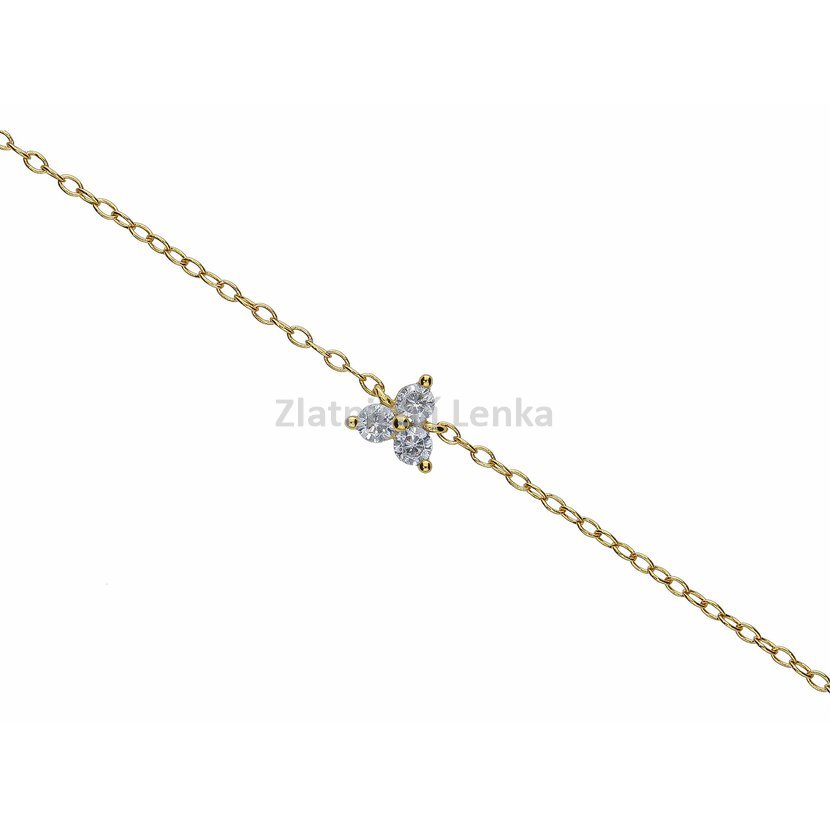 Materiál: stříbro 925/1000 Povrchová úprava: zlacení Velikost: ozdoba 6 x 6 mm, délka 21 cm Zapínání: karabinka Osazení: bílý zirkon Doporučení: šperk doporučujeme odkládat, aby si co nejdéle zachoval svůj krásný vzhled.